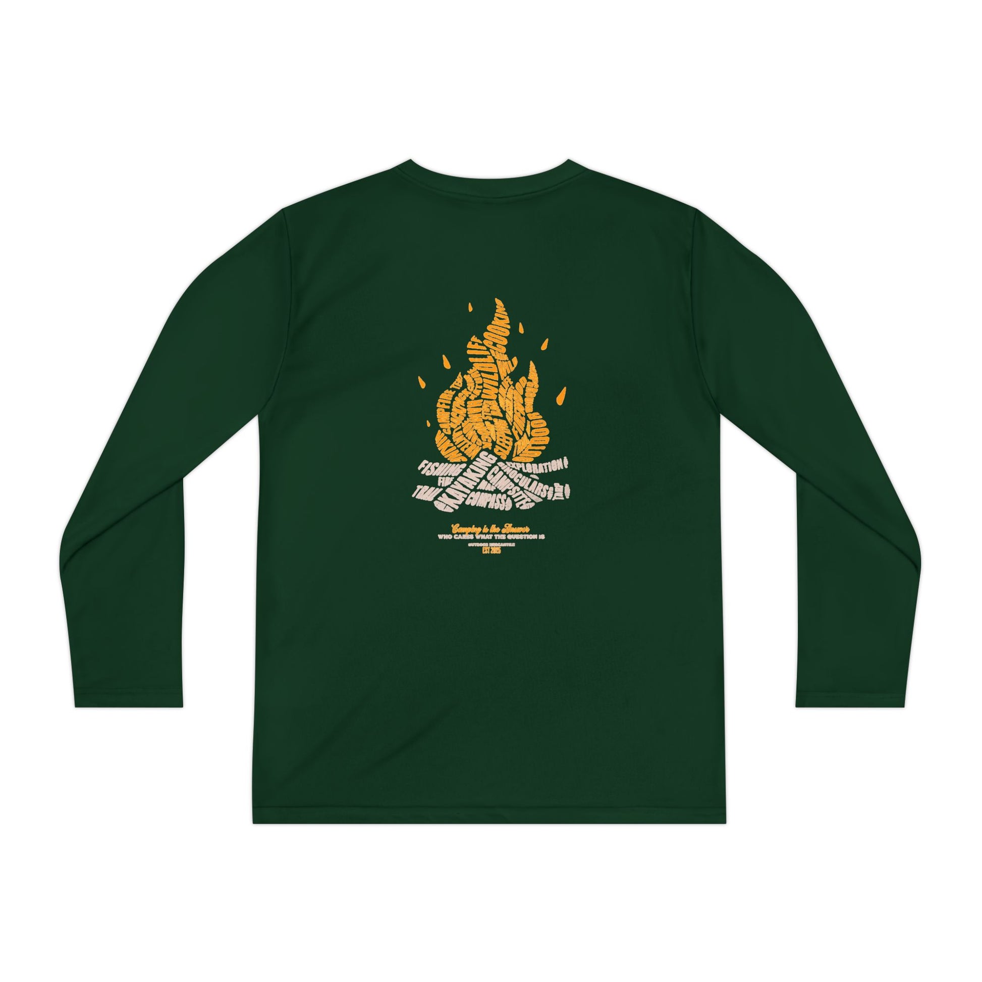 This Youth Long Sleeve Competitor Tee is perfect for young adventurers who love staying active while looking stylish. Made of lightweight and breathable fabric, this tee is designed to keep kids cool and dry during any activity, whether it's a day at the park, a sports practice, or a camping trip with friends. Its athletic fit allows for easy movement, making it ideal for sports enthusiasts. With a unique campfire-themed design, this shirt adds a fun vibe to any outdoor activity. It’s a great gift for birthdays, back-to-school, or just because! Perfect for those who cherish nature, outdoor exploration, and cozy bonfire evenings.